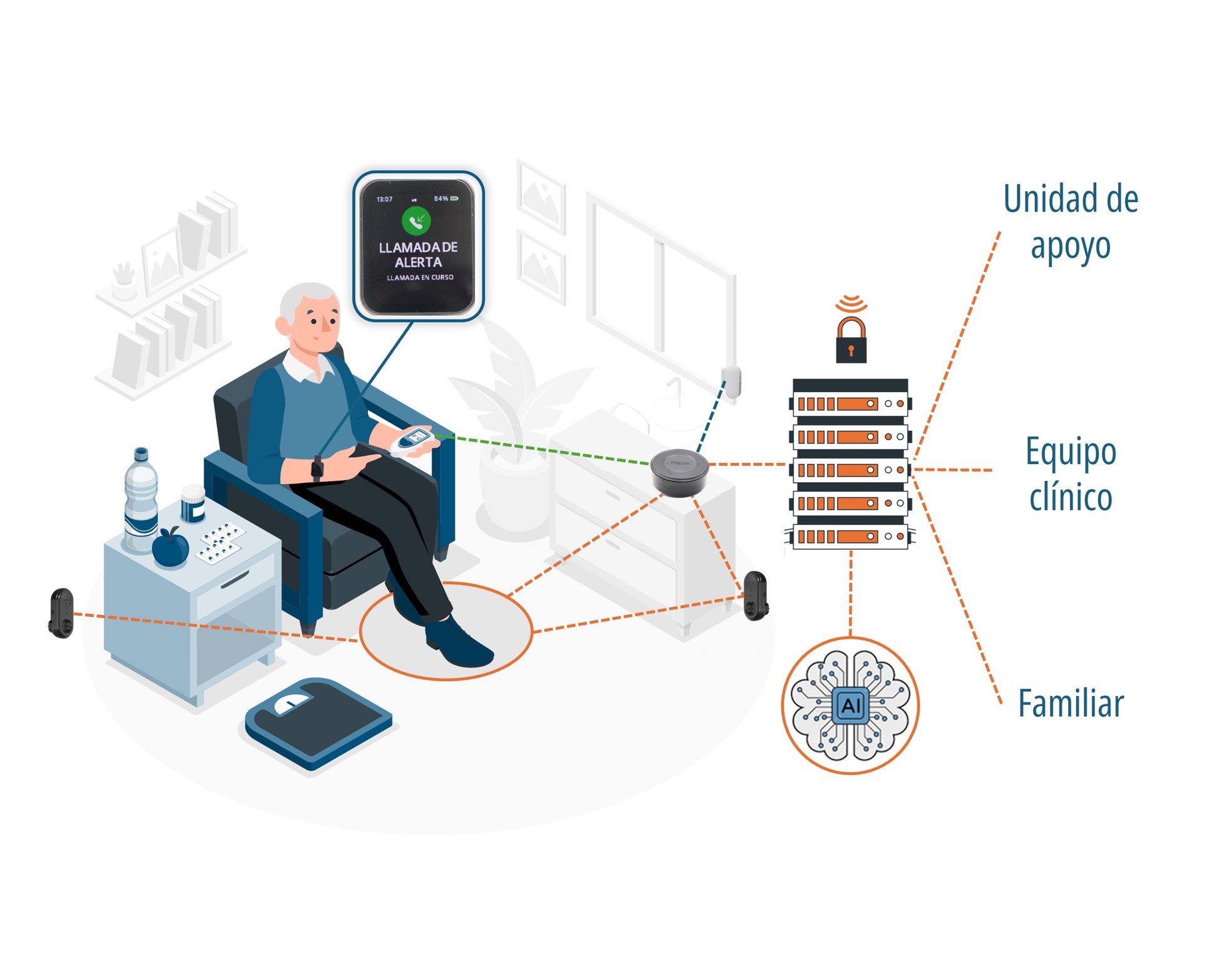ViveLibre’s multifactorial teleassistance is therefore conceived as a well-balanced equation between technology and human intervention. Ultimately, it is a service that incorporates all the necessary elements to ensure the best possible care for the user, based on a deep understanding of their needs: