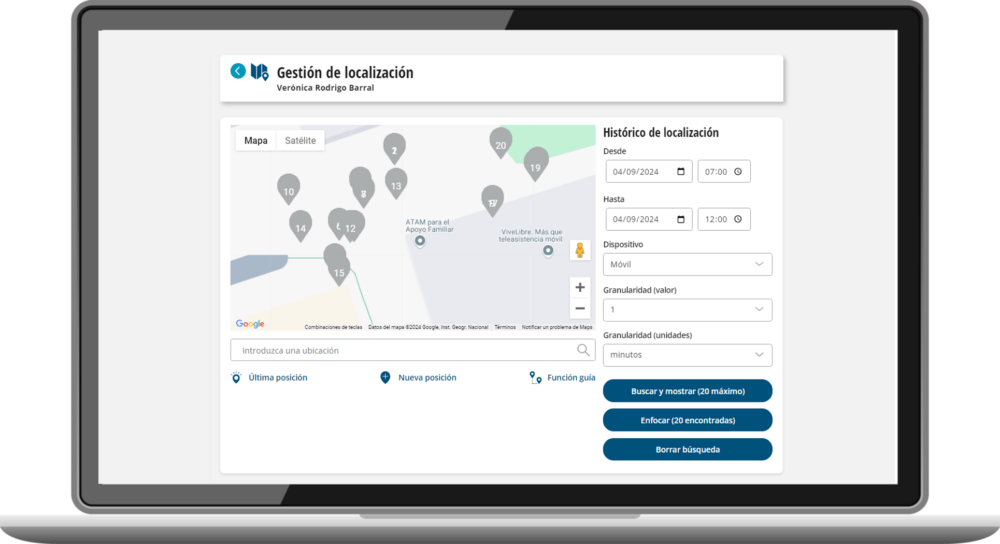 Los familiares pueden acceder al histórico de localizaciones y recorridos de los usuarios dentro de una franja de tiempo determinada.