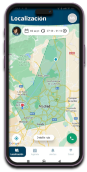 Ante situaciones de riesgo para el usuario, como desorientación, pérdida o caída, la aplicación proporciona un servicio preciso de seguimiento en tiempo real del usuario.