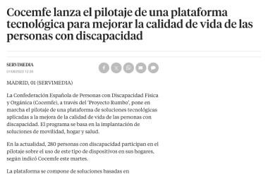 El ‘Proyecto RUMBO: hacia un modelo de autonomía personal conectada e inclusiva’ es una iniciativa conjunta desarrollada entre 22 entidades de distintas confederaciones del Tercer Sector de la discapacidad, que incluye entre otras a COCEMFE, ASPACE, PREDIF, FEDACE y AUTISMO ESPAÑA.